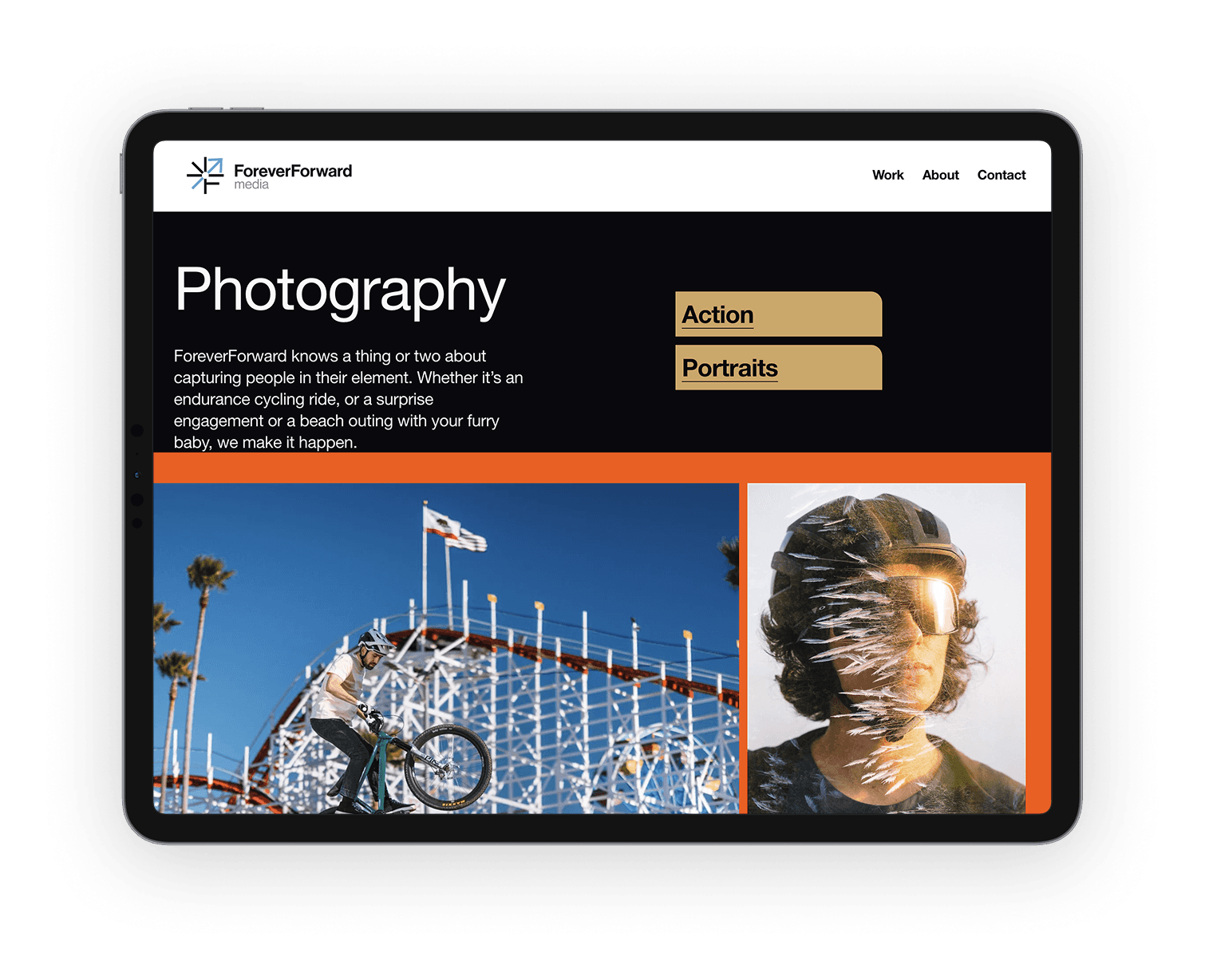 Josh Becker had a launch date, a clear vision for his photo and video studio, and two weeks to make it real. ForeverForward Media needed a brand that could hold its own in a competitive creative market — bold enough to attract the right clients, cohesive enough to show up professionally across every touchpoint from day one.