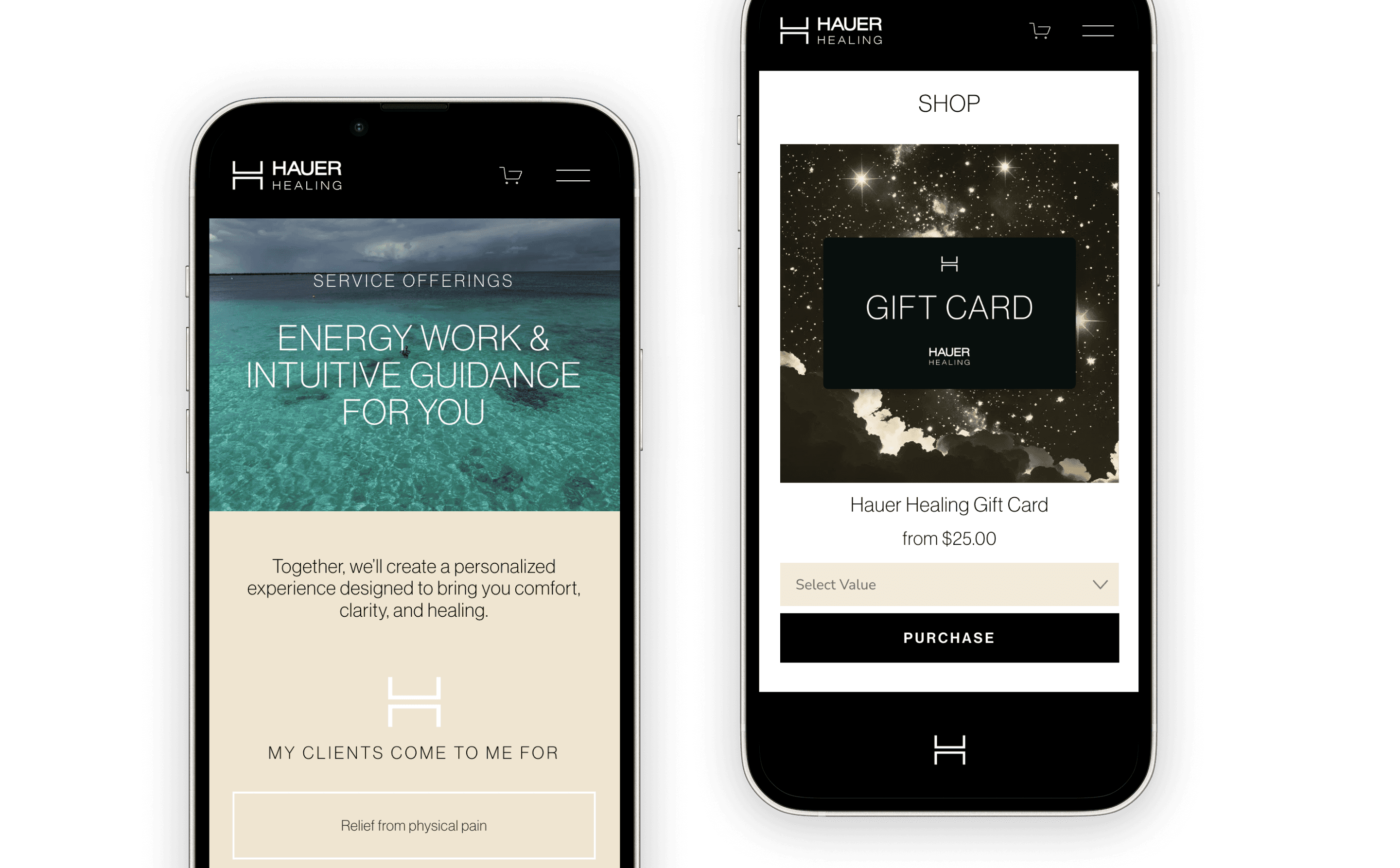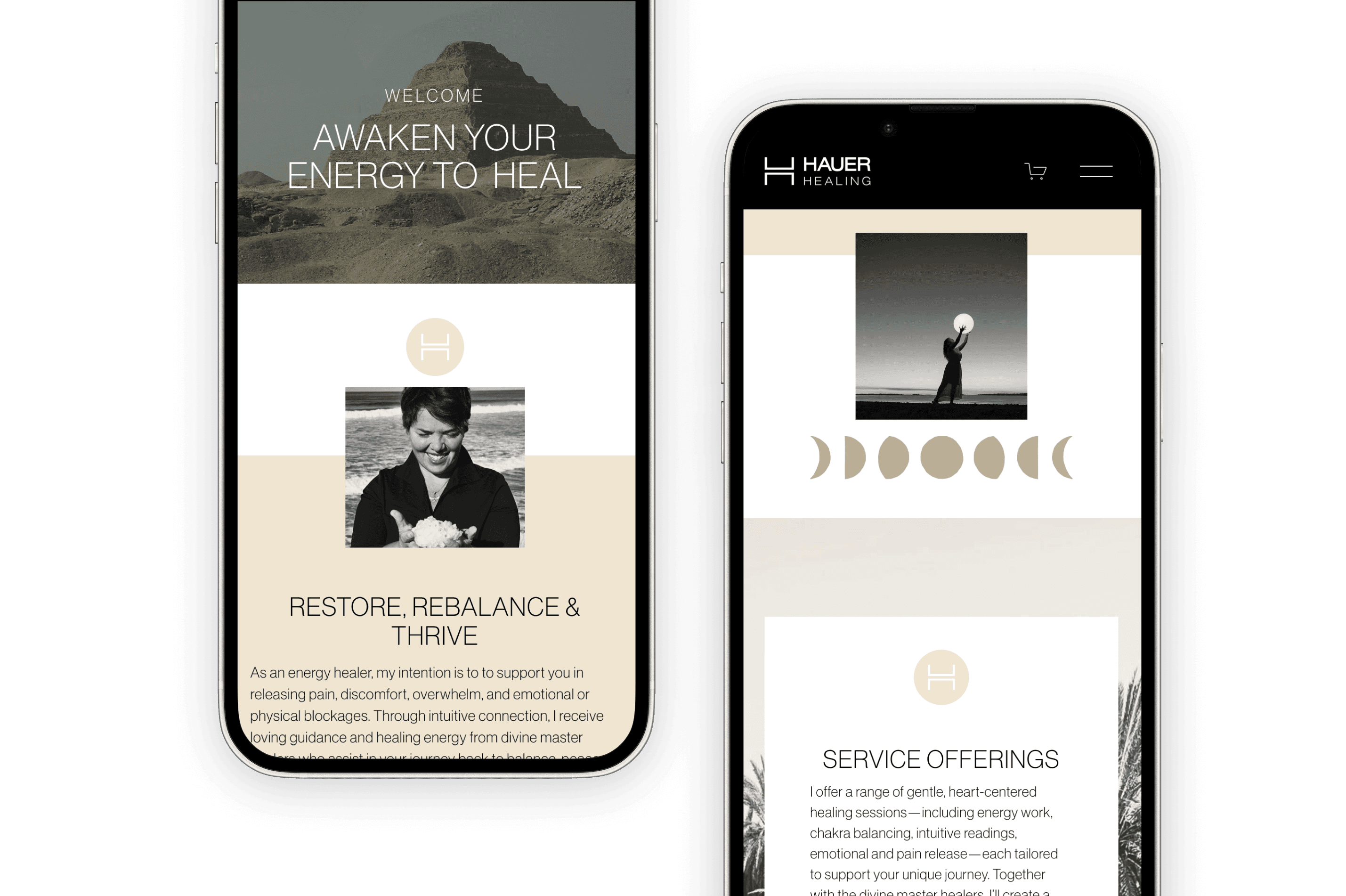 Patsy Hauer is an energy healer launching her own practice — with a clear vision and one firm requirement: don't blend in. The energy healing space had a recognizable aesthetic — layered illustrations, mystical imagery, ornate angels — that felt dated and, for anyone new to this kind of work, a little hard to walk through the door of. Patsy wanted something cleaner and more approachable, without losing the depth of what she does.