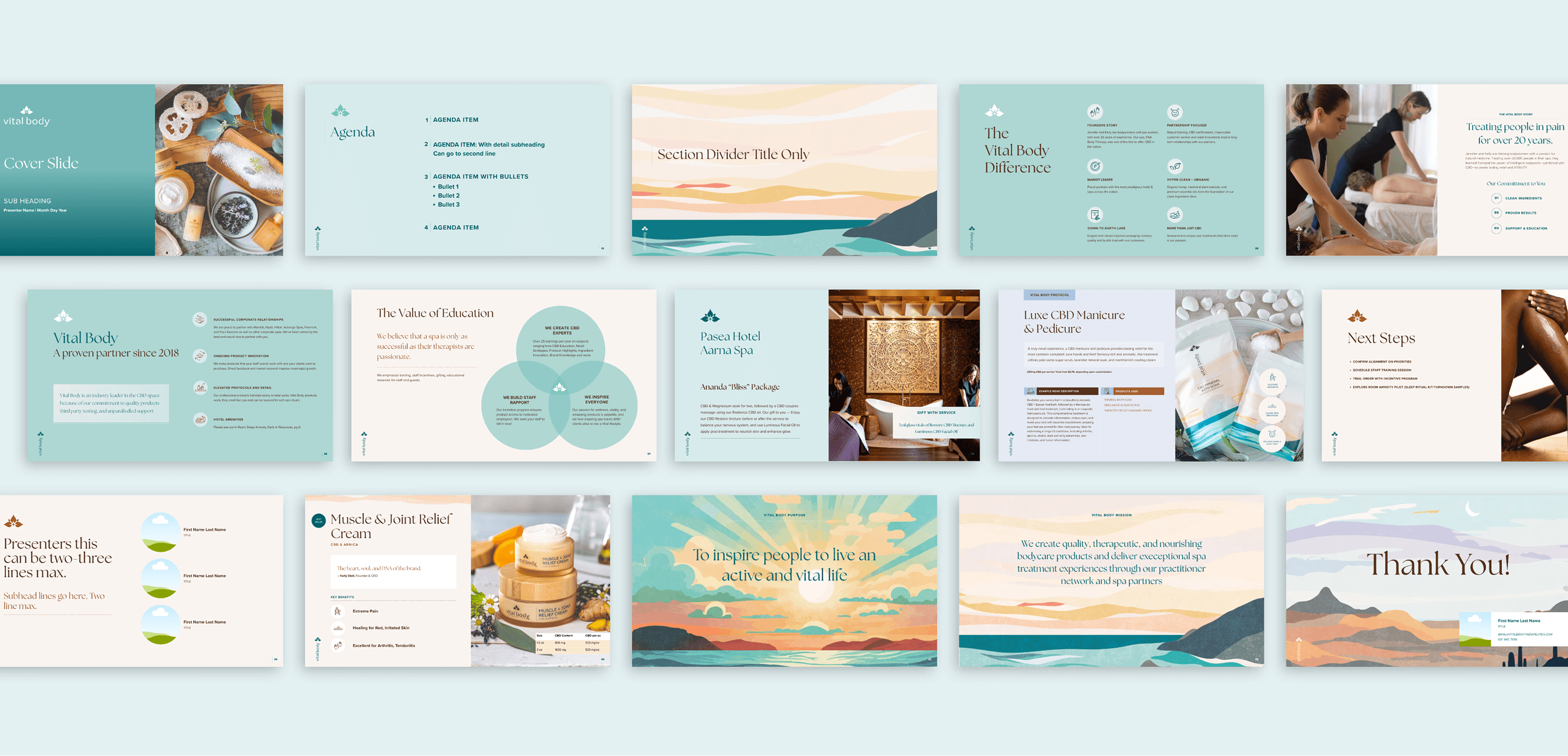 A sales rep can now open a pitch deck template, customize it for a prospect, and walk into a meeting confident that it looks like Vital Body, in minutes.